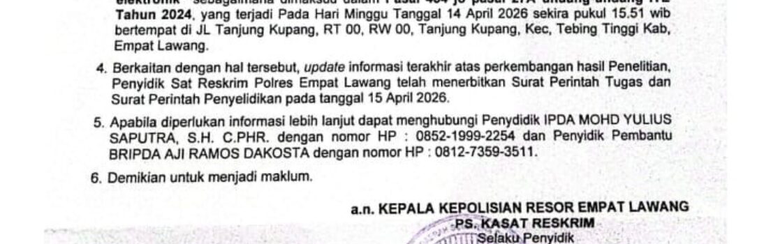 Berita Empat Lawang – Penanganan kasus dugaan penghinaan terhadap profesi wartawan di Kabupaten Empat Lawang, Sumatera Selatan, terus berlanjut. Polres Empat Lawang