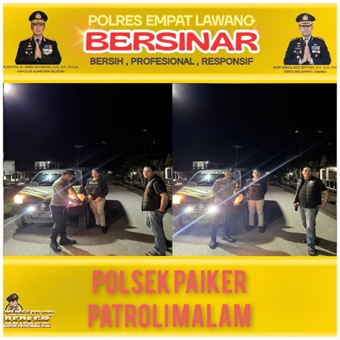 BERITA EMPAT LAWANG – Untuk menjaga keamanan dan ketertiban masyarakat pada malam hari, personel Polsek Pasemah Air Keruh Polres Empat Lawang melaksanakan kegiatan patroli malam pada Minggu, 22 Februari 2026, sekira pukul 20.00 WIB.