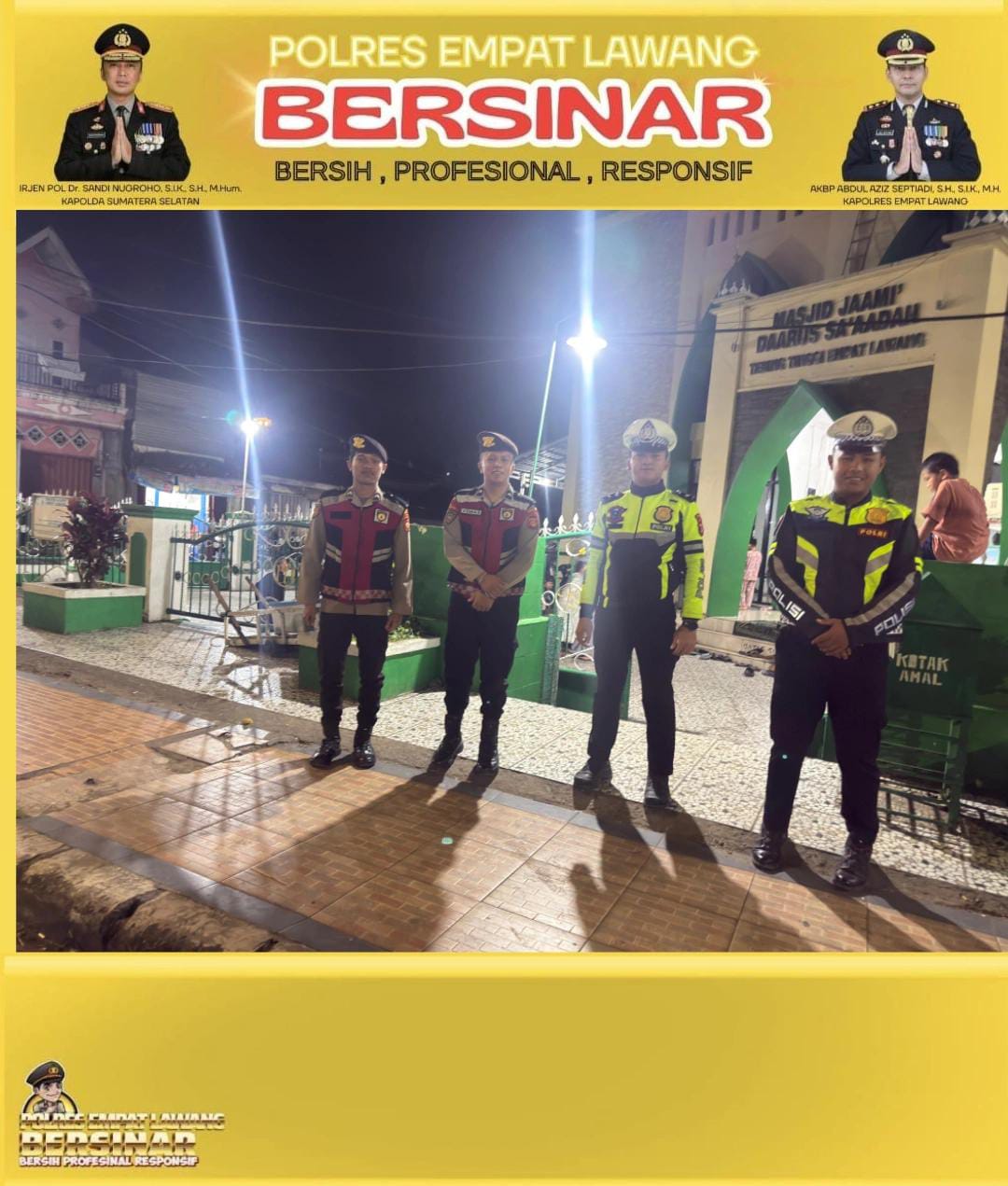 BERITA EMPAT LAWANG – Dalam rangka menjaga situasi Harkamtibmas yang aman dan kondusif selama Bulan Suci Ramadhan, personel Polres Empat Lawang melaksanakan kegiatan patroli malam menggunakan kendaraan roda empat (R4) di wilayah hukum Polres Empat Lawang.