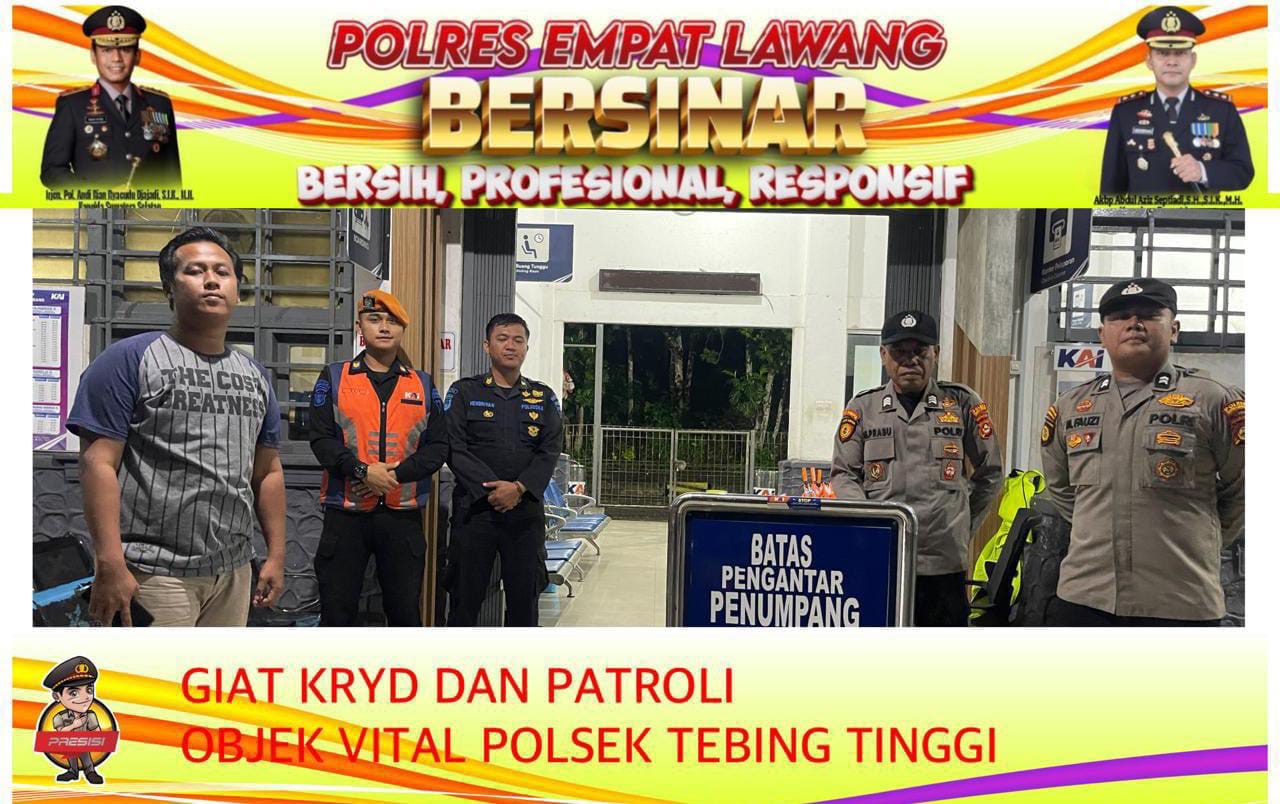 Sekira pukul 21.00 WIB, anggota Polsek Tebing Tinggi juga melaksanakan patroli objek vital sebagai upaya antisipasi tindak kejahatan 3C (Curat, Curas, dan Curanmor). Dari hasil patroli tersebut, situasi di wilayah yang dipantau tetap aman, kondusif, dan terkendali.